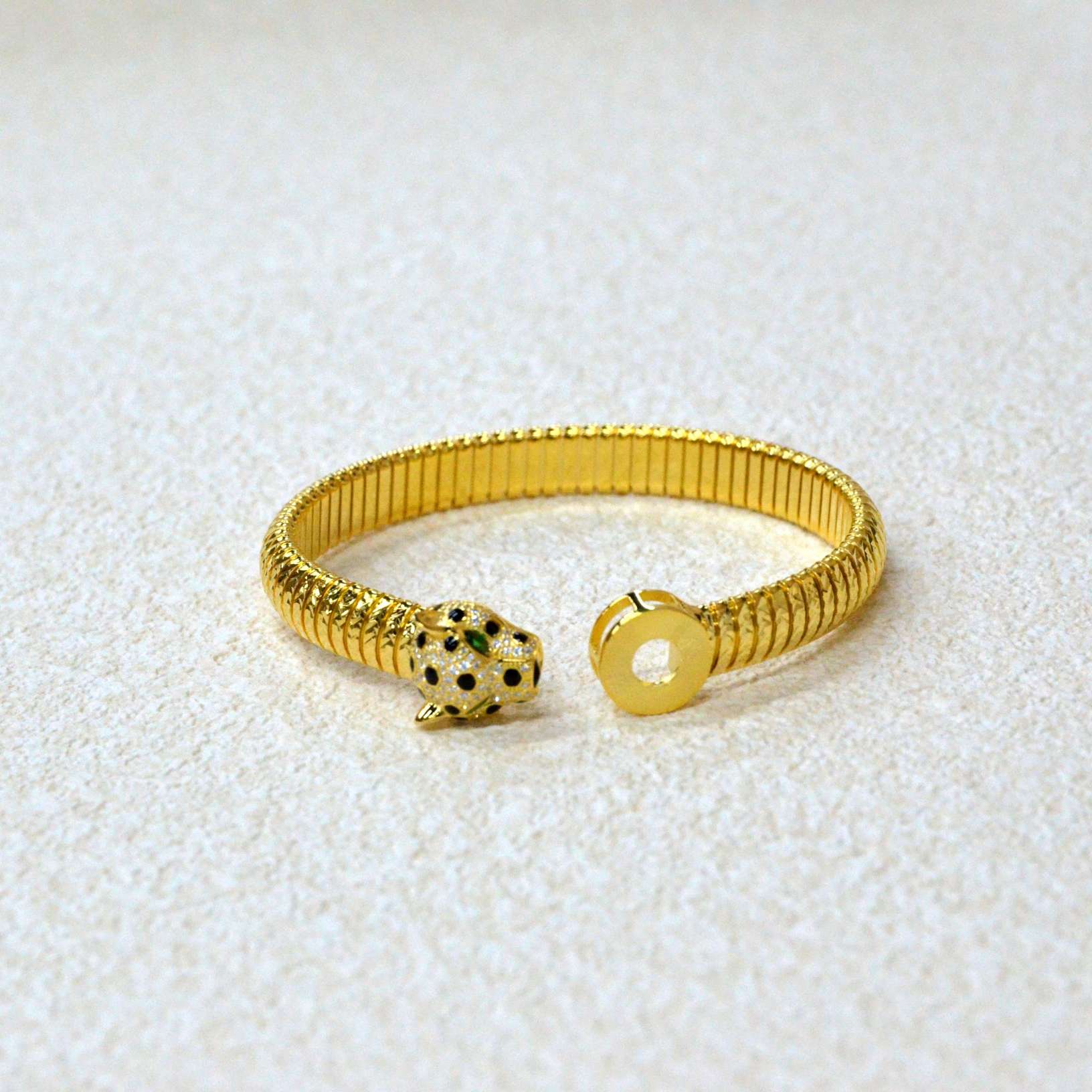 925 Italian Silver Bangle 8.5 threaded enamel leopard bracelet