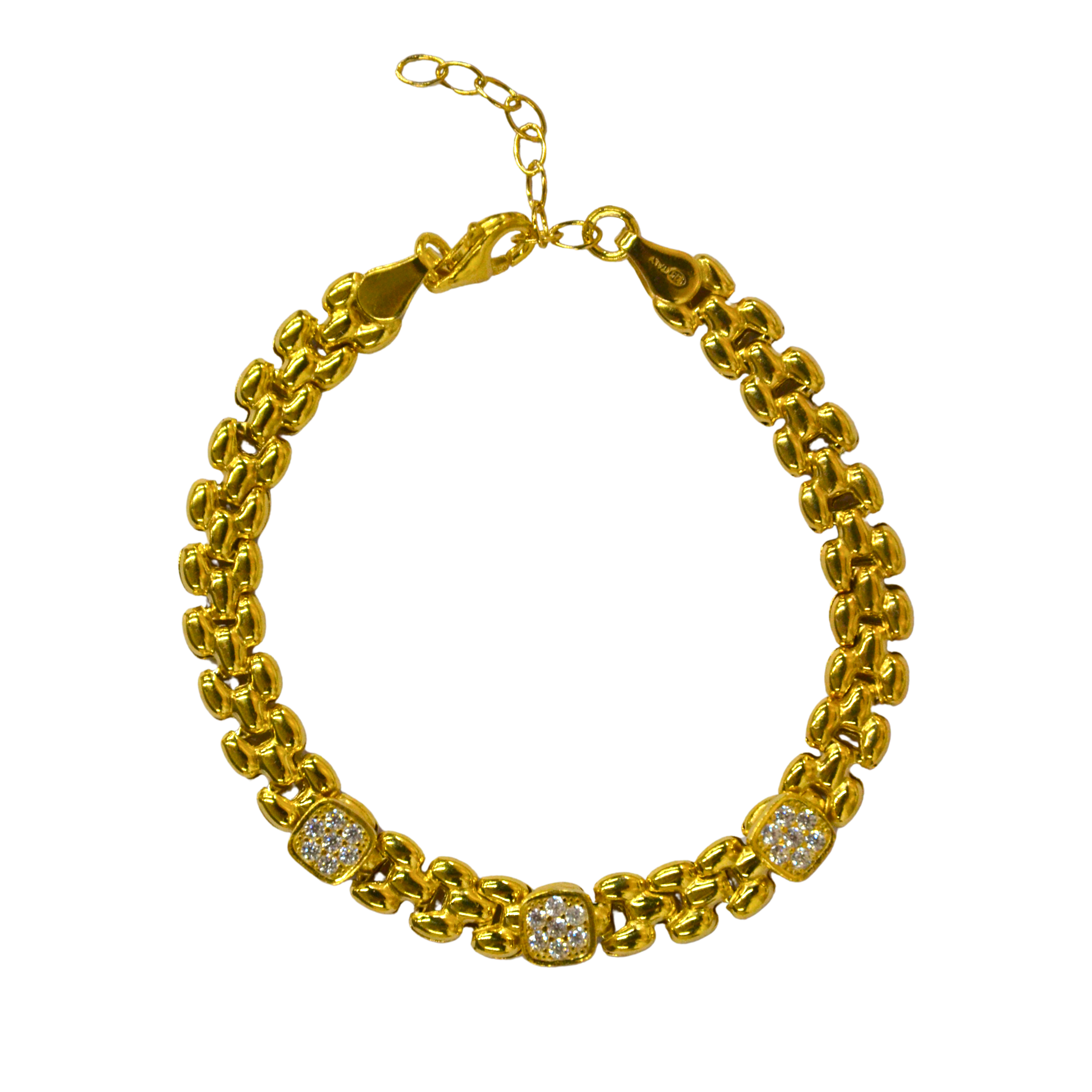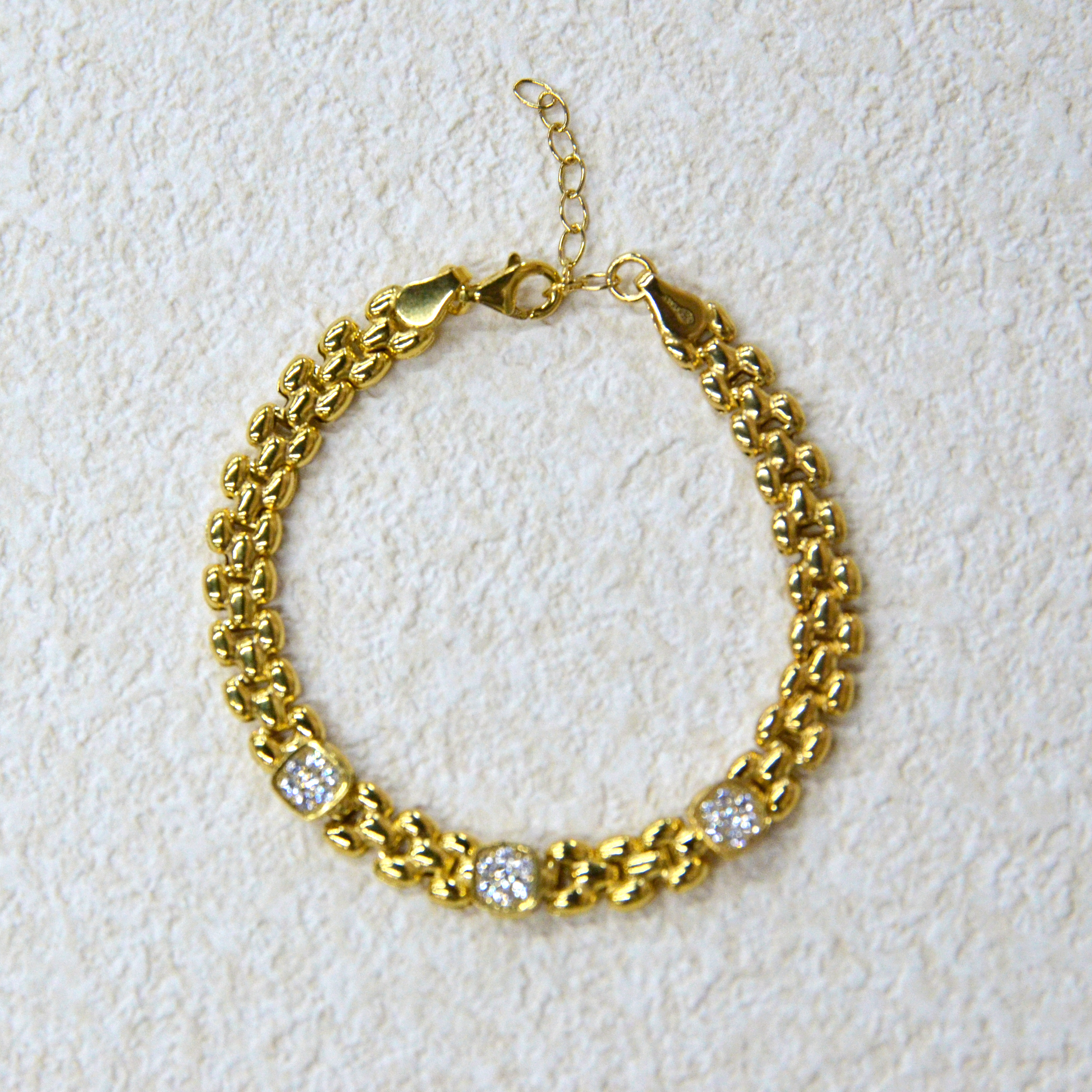 925 Italian Silver Bracelet Cactus Bracelet with 3 Beads 16cm