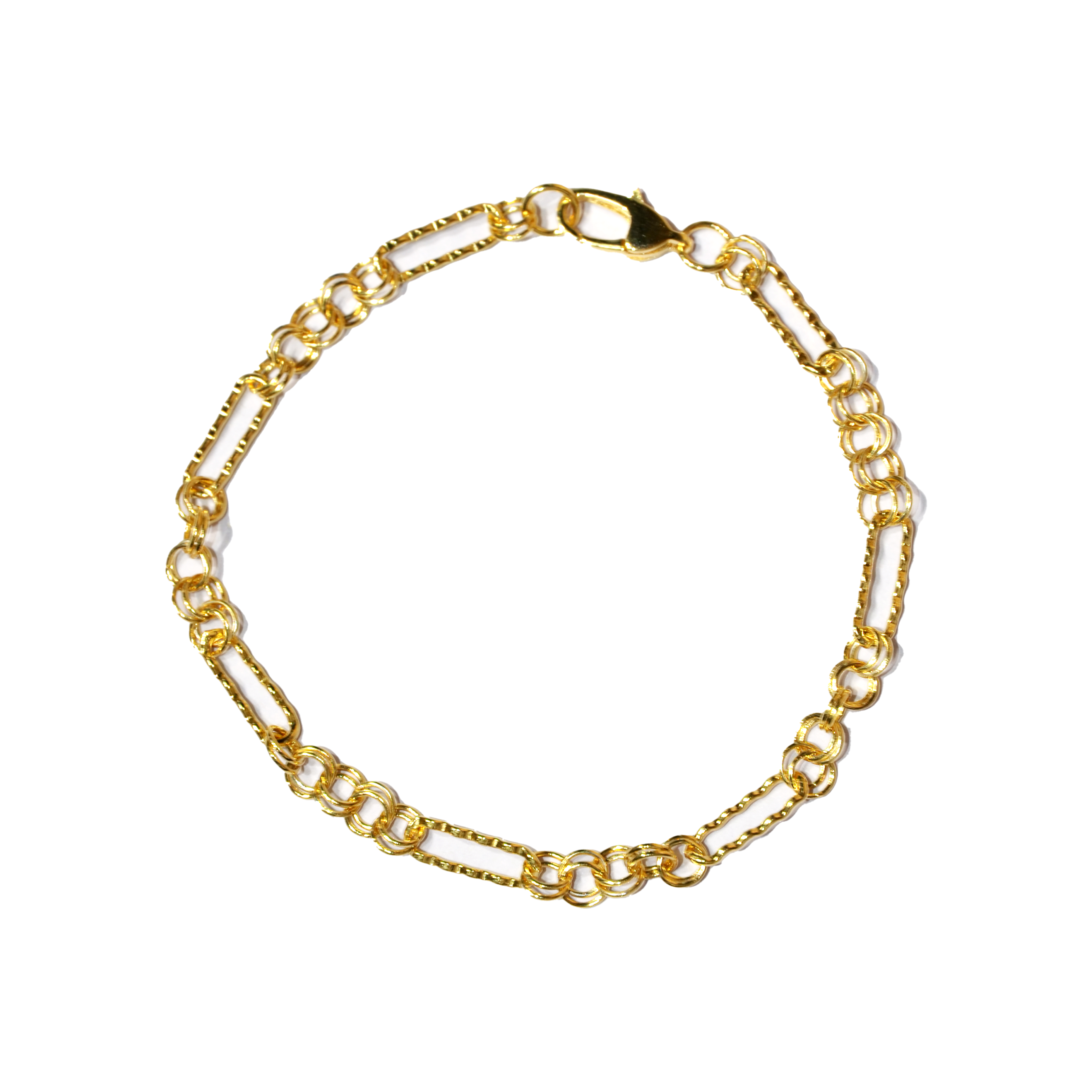 925 Italian Silver Bracelet 3.0mm Pressed Wave Pattern Dual Ring Bracelet 17CM