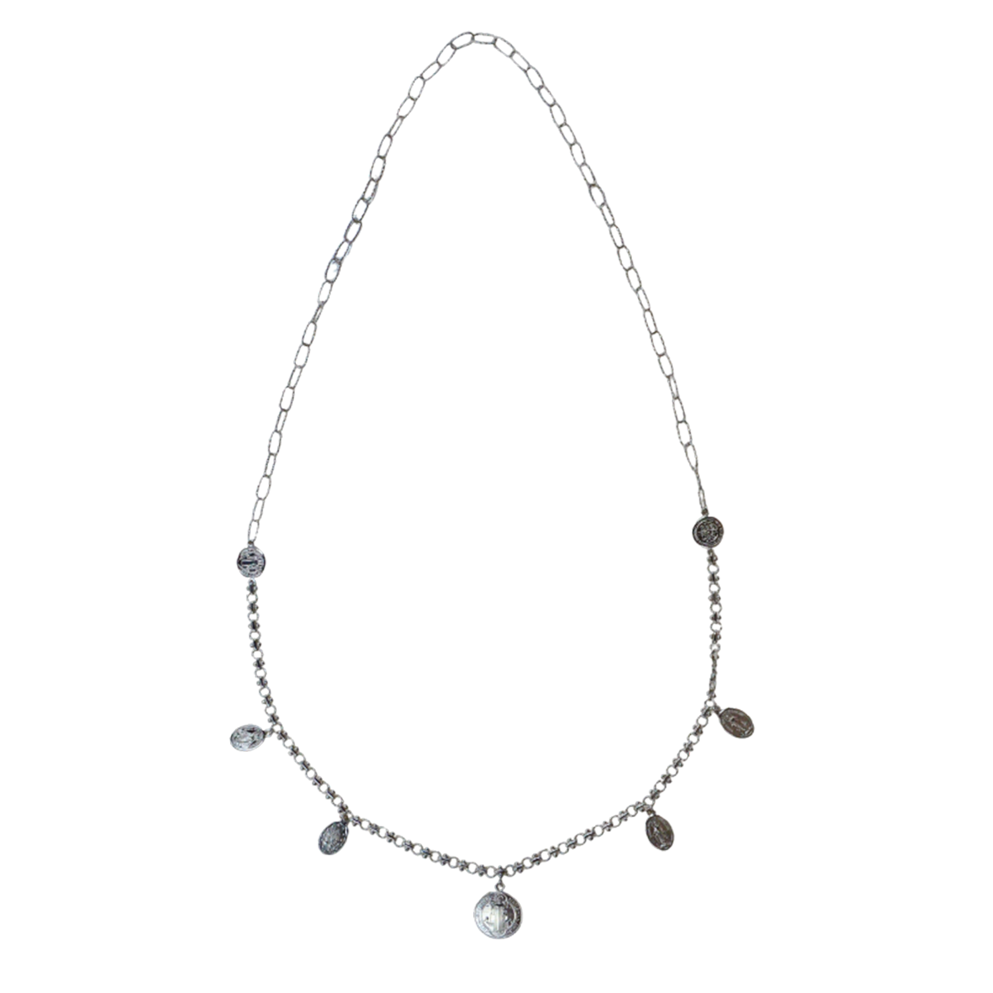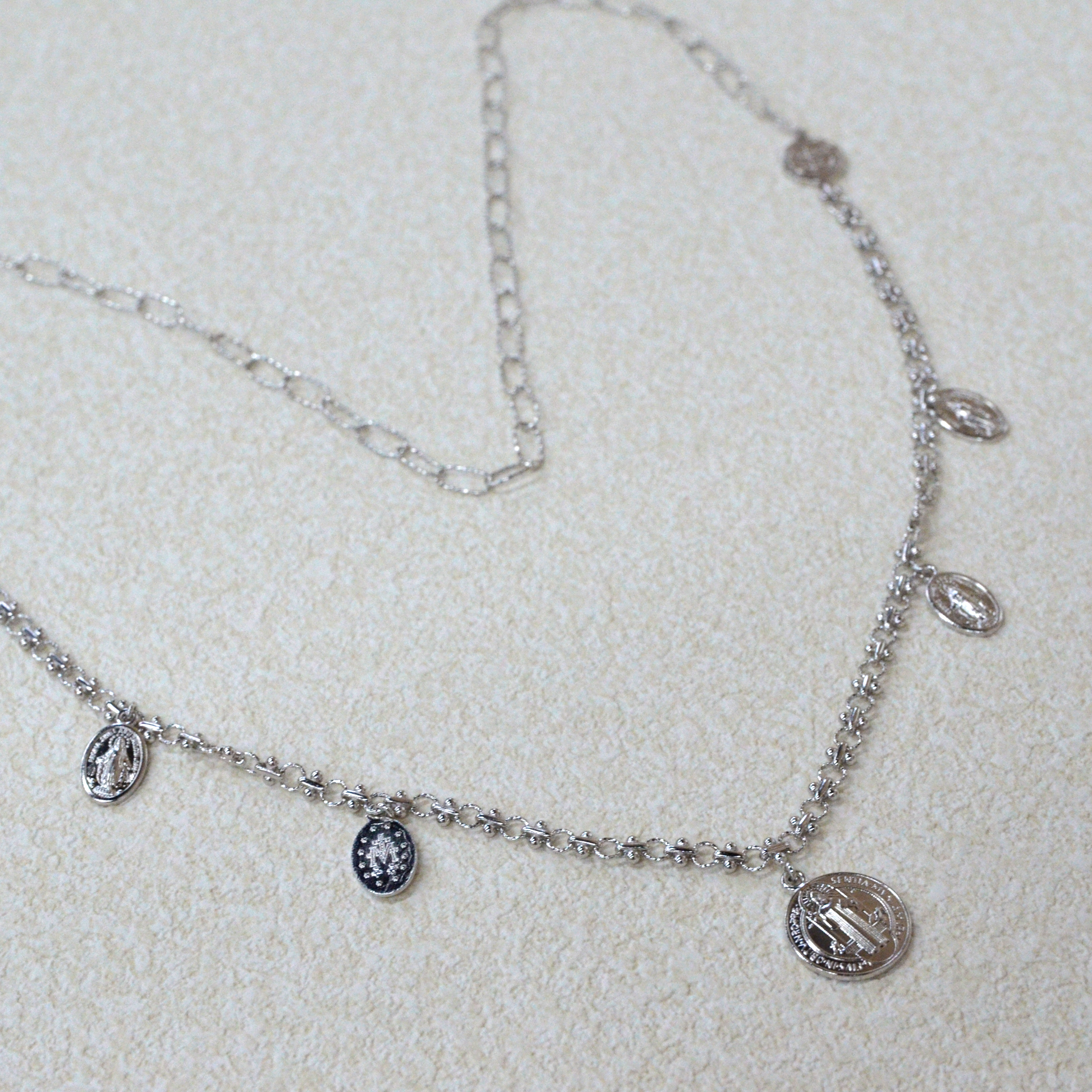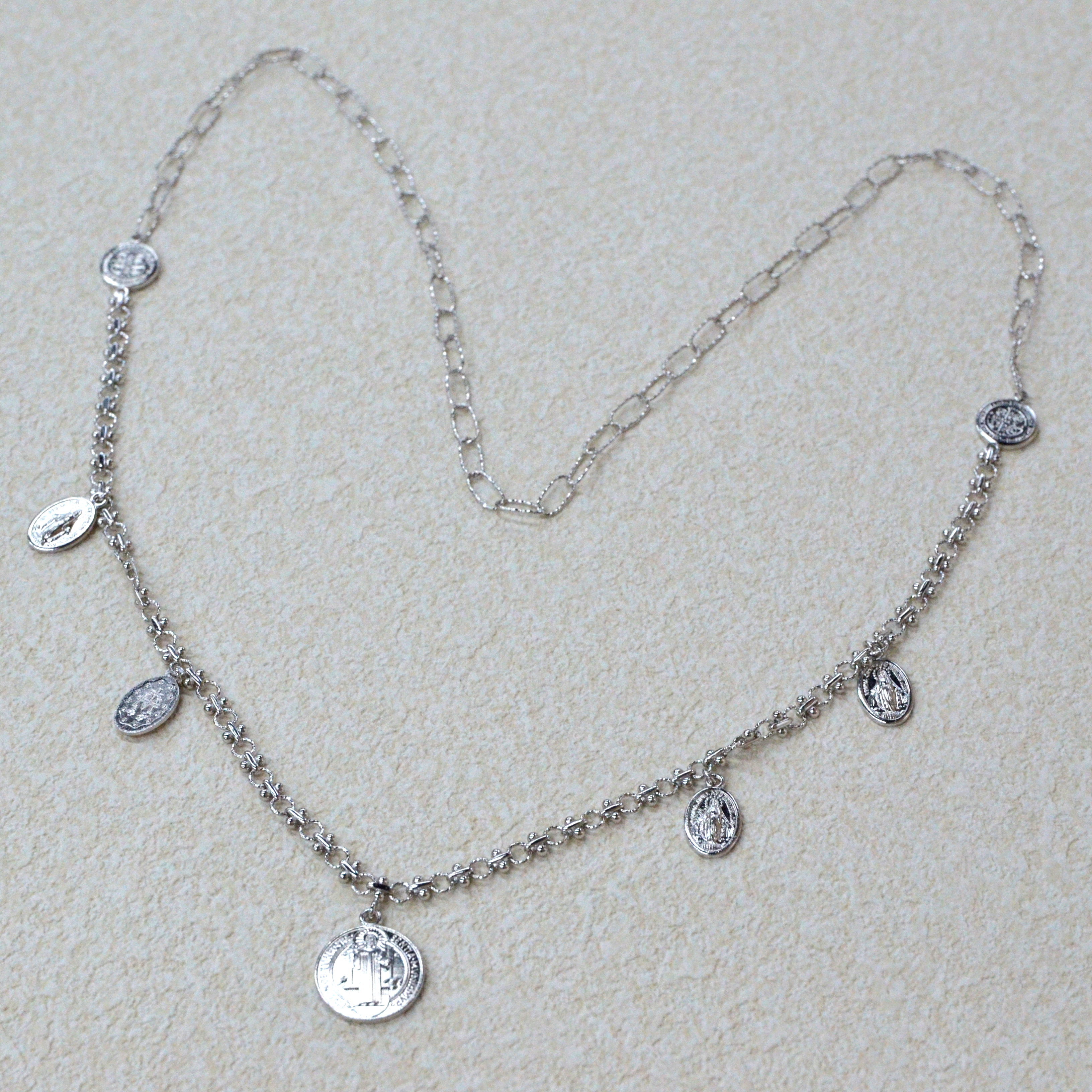 925 Italian Silver Necklace 17+13.6 Jesus pendant AB7 coin necklace 75CM