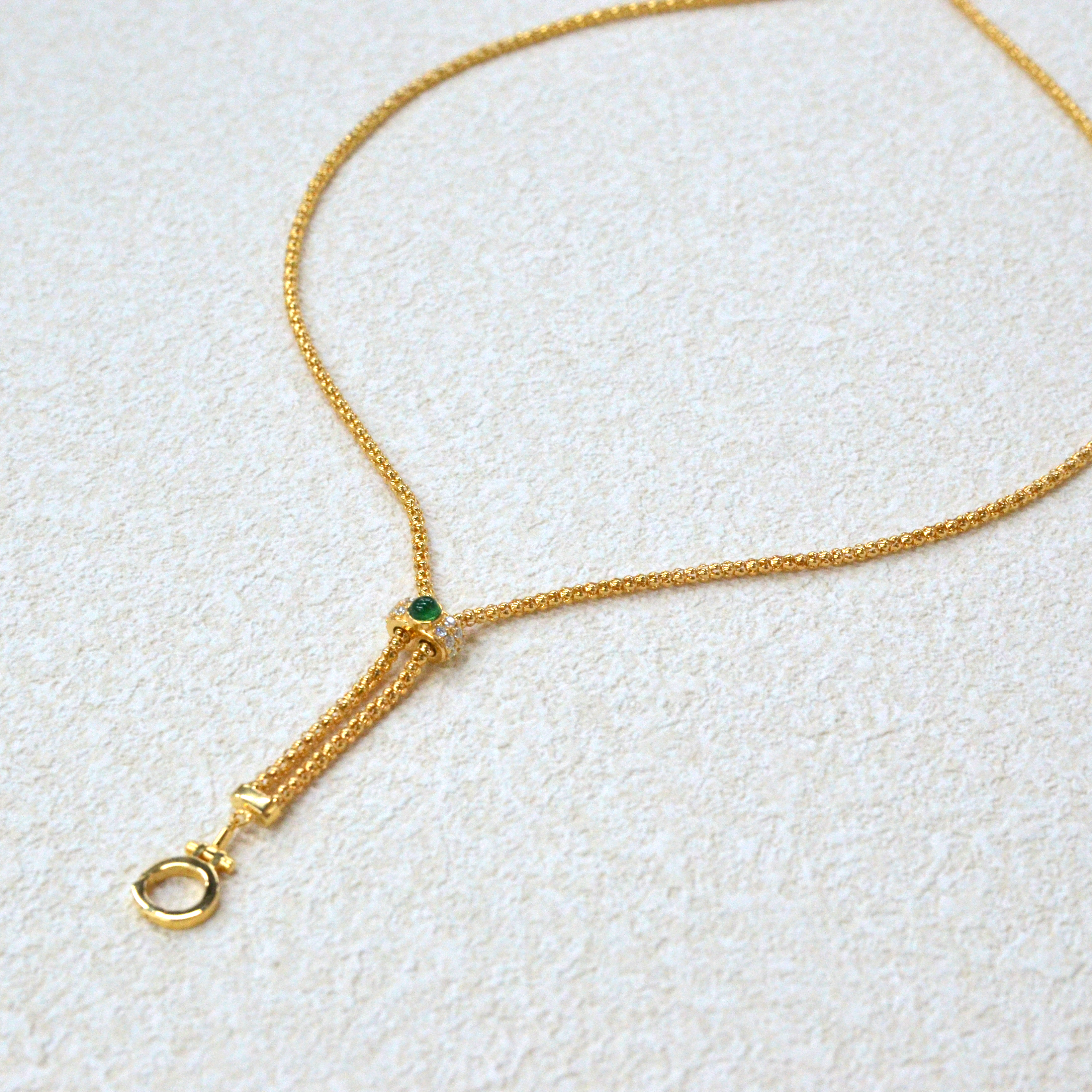 925 Italian Silver Necklace 2.0 Small Circle Embracing Green Zirconium Snap Ring Necklace 80CM
