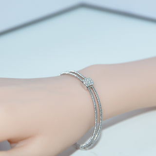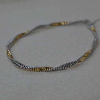 925 Italian Silver Bracelet,Double-ring round gold string wire-wound bracelet,17+3cm