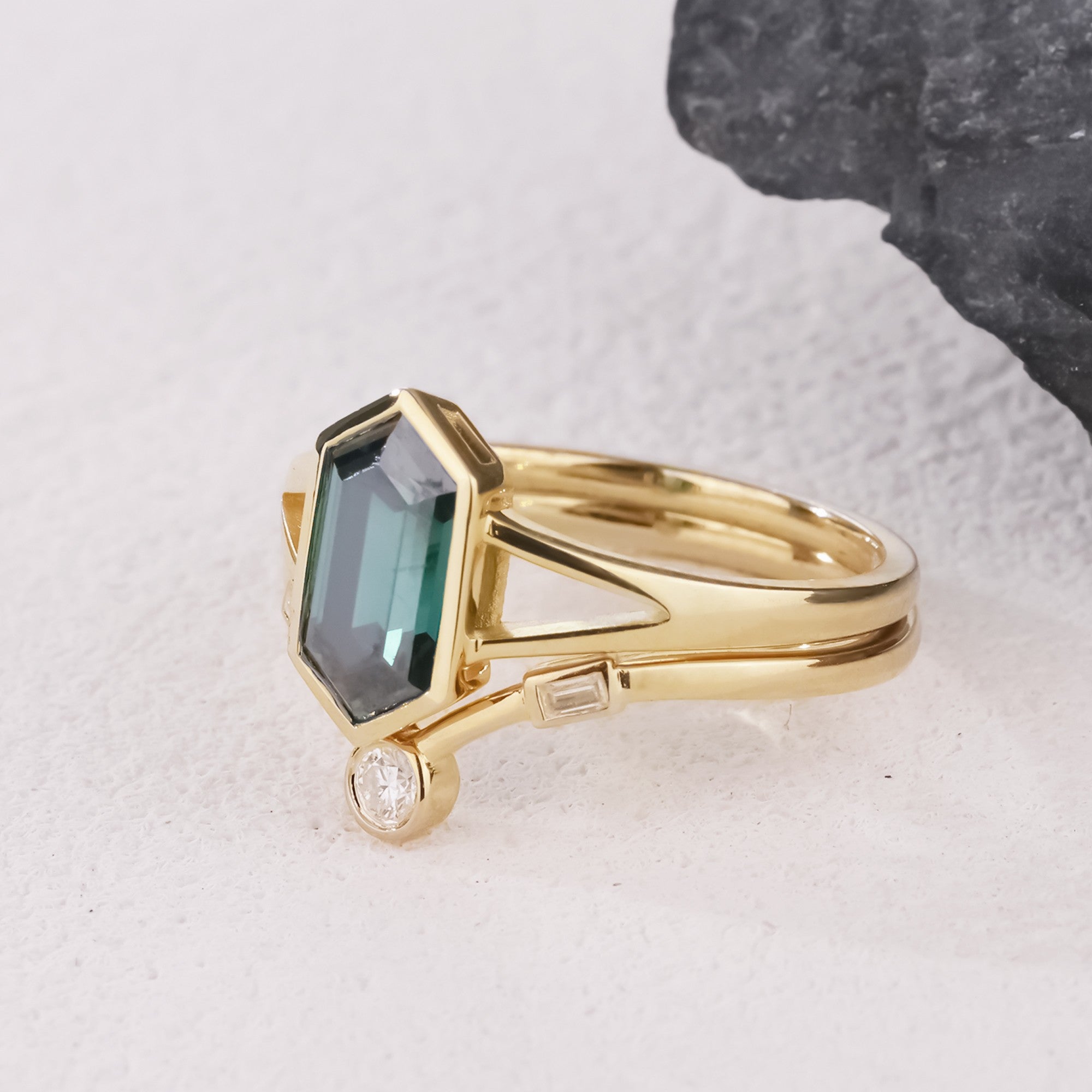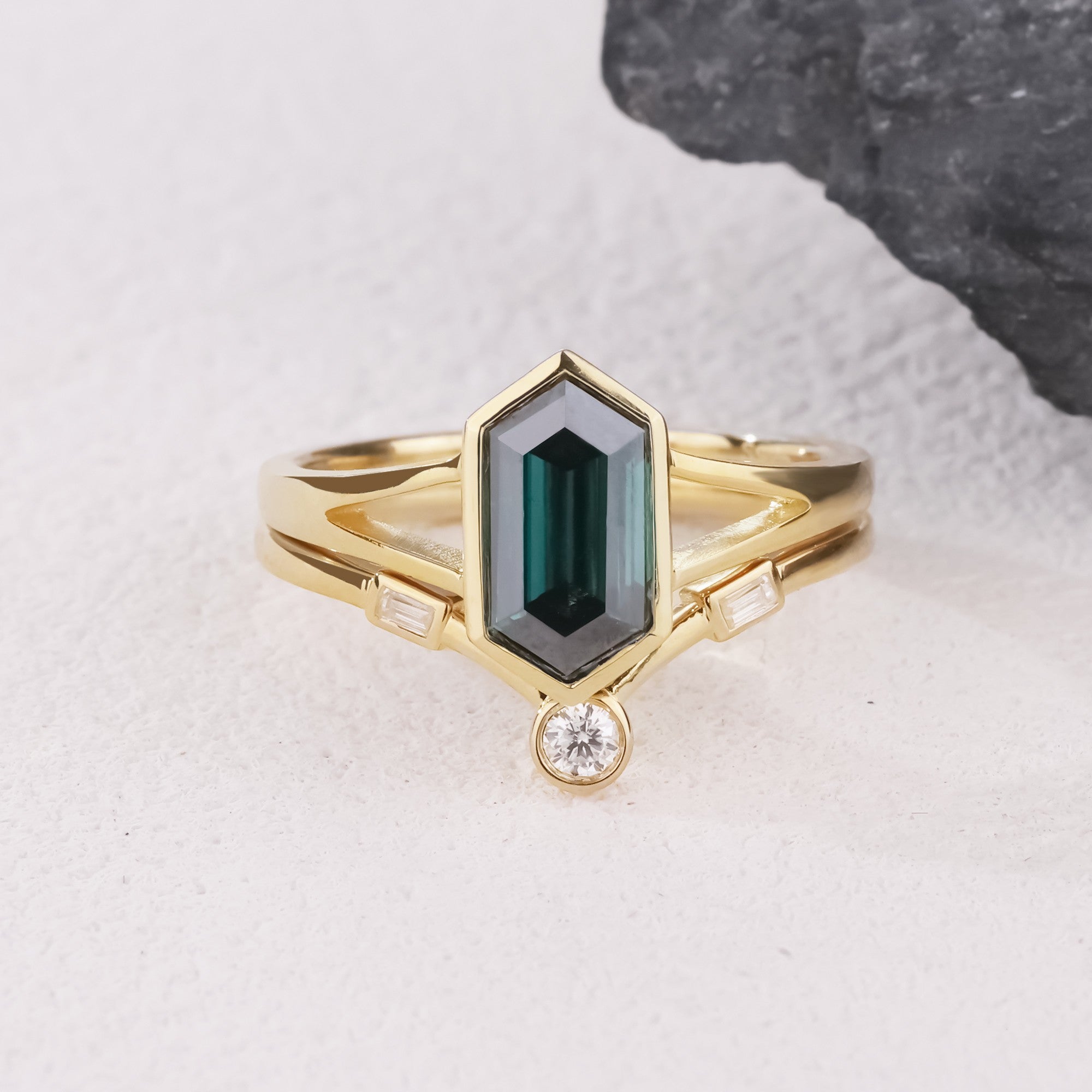 Emerald Mirage • Hexagon Moissanite Bridal Set