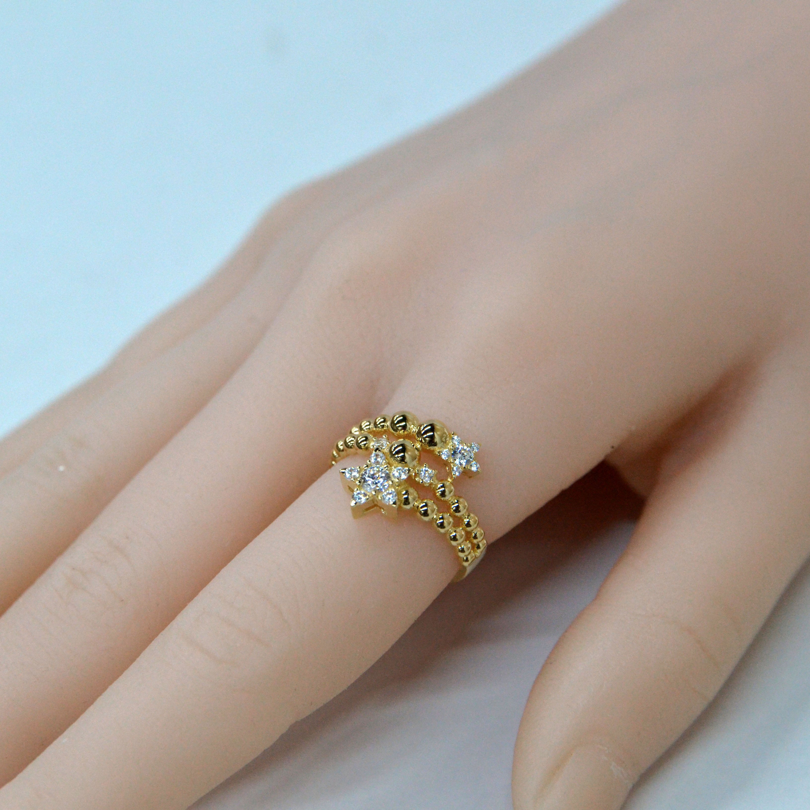925 italian silver ring Three-ring pearl pentagram zirconium ring