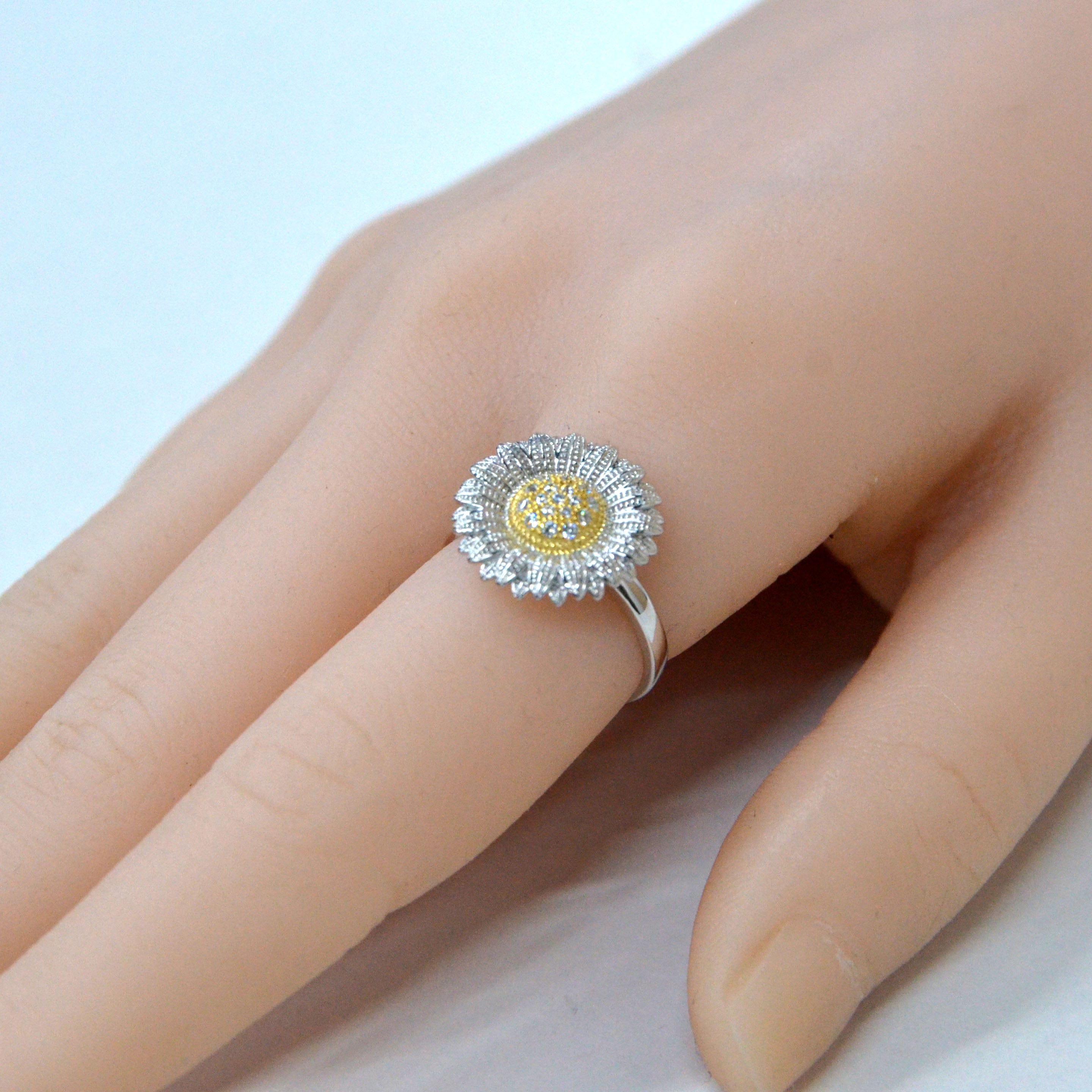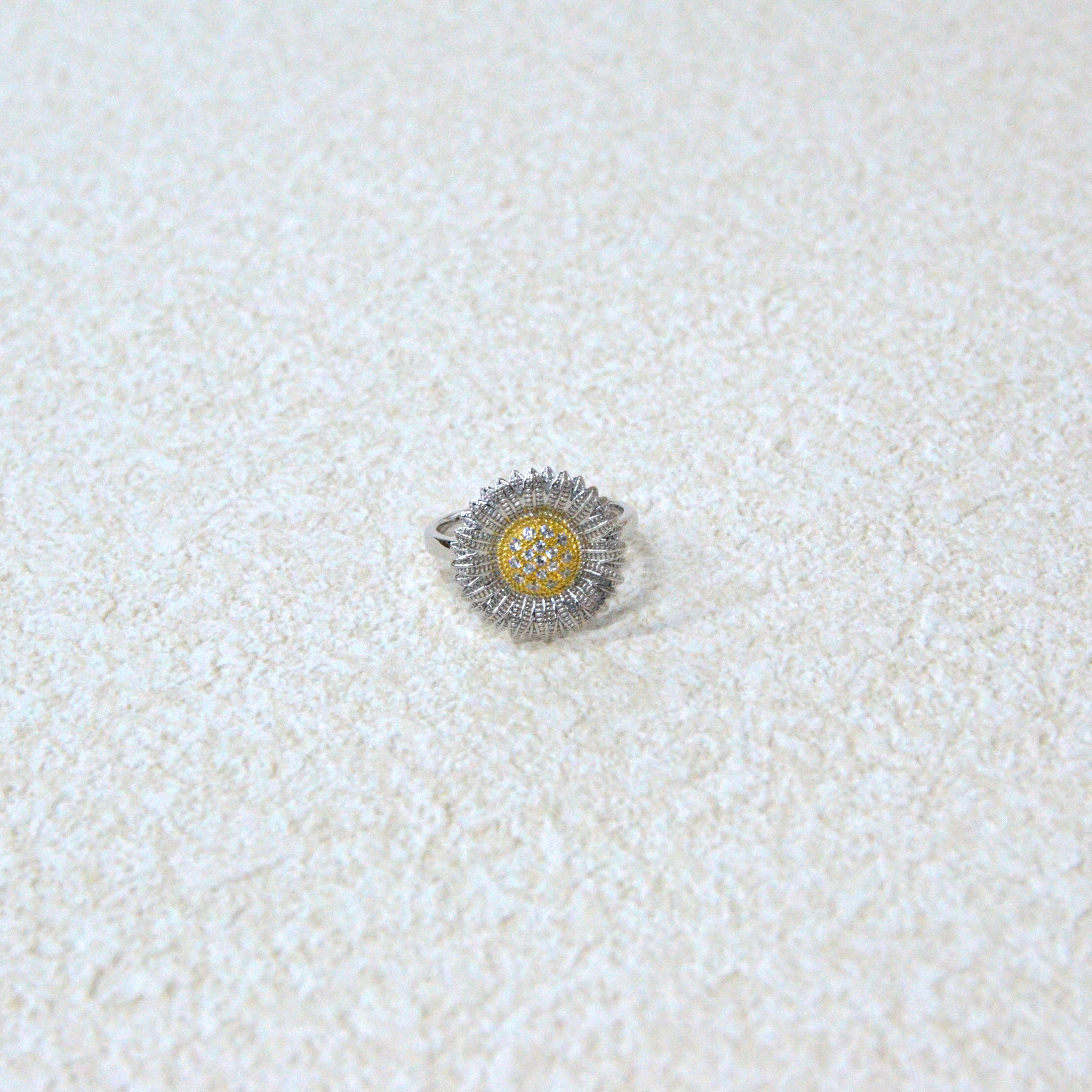 925 italian silver ring Inlaid Bellis perennis Chrysanthemum morifolium ring